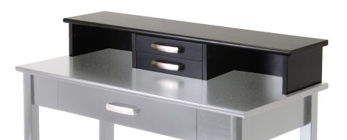 -. Feature : Liso solid/composite wood Desk Hutch with 2 drawers / 42L by 7.7W by 5.9H / Contemporary Espresso finish / Organize your space and maximize the work surface / Ready to assemble with hardware and tools included