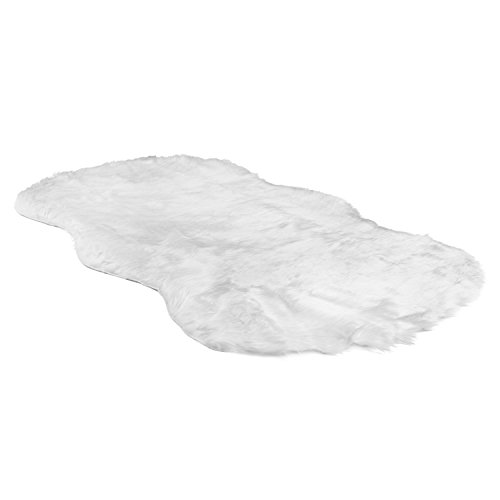 BEAUTIFUL COLOR, THE RIGHT SIZE, and A NATURAL SHAPE: Nearly pure white and at a generous 5-feet long and 3-feet wide, this fluffy white faux fur area rug is naturally shaped to soften corners and hard edges. It's perfect draped over a chair or used as a floor covering. The large shape gives you so many options. What will you do with your Barbaloo™?