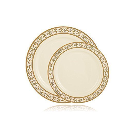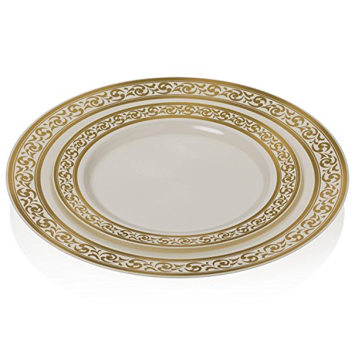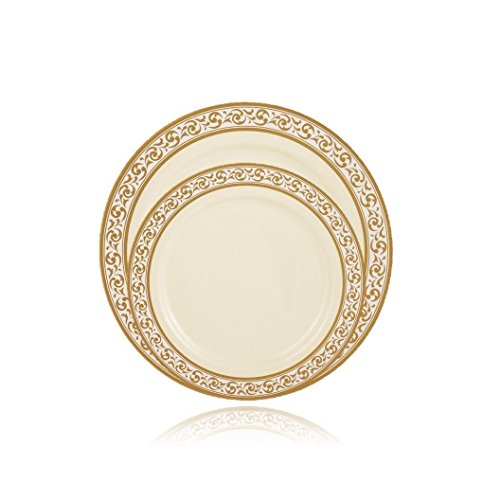 Posh Setting Premium Collection Combo Pack China Look Cream/Gold Plastic Plates,(Includes 8 Packs of 10 Plates, 40 10.25'' Dinner Plates and 40 7.25'' Salad Plates), Fancy Disposable Dinnerware (80)