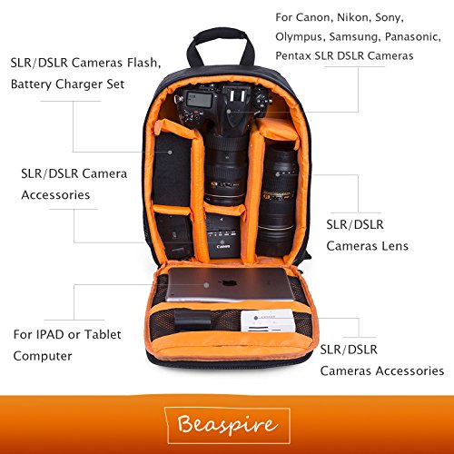 Inside: Main compartment is a camera liner can hold full range of cameras, lenses and related gear and itself lined with a fabric covered to protect your equipments. The removable, foam-padded dividers allow customization to exactly match your mix of cameras, lenses and equipment.