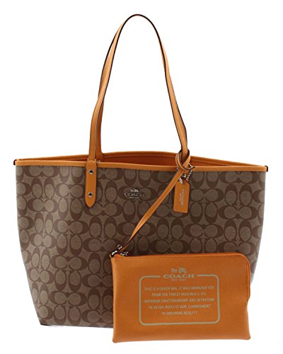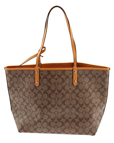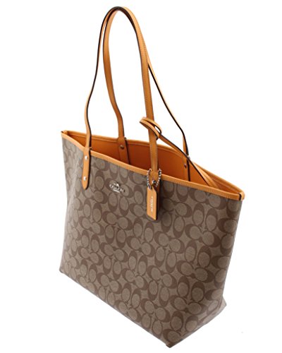-. Title : Coach Signature Reversible PVC City Large Tote Bag Handbag Brown / Yellow