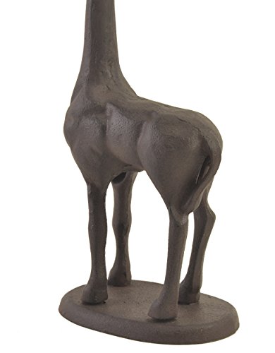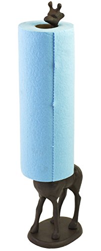 This cast iron Giraffe stands 18 5/8" tall. It's super long neck that can hold a roll of paper towels or two rolls of toilet Paper!!!