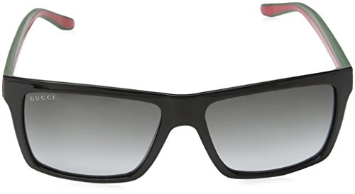 Gucci Sunglasses, style GG1013 is a rectangular plastic frame. The Rx-able GG1013 features a saddle nose bridge and wire core adjustable temples for maximum comfort. The Gucci Sunglasses logo is engraved on the temples. Gucci Sunglasses have lightweight scratch/impact-resistant lenses.Feature