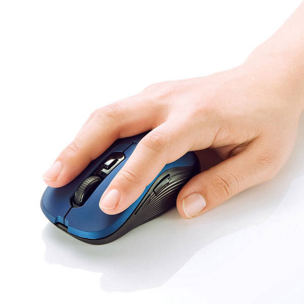 ●赤色の光学式より感度の高い青色LEDセンサーを搭載し光沢感のあるデスク面でもマウスパッドなしでスムーズな操作が可能です。