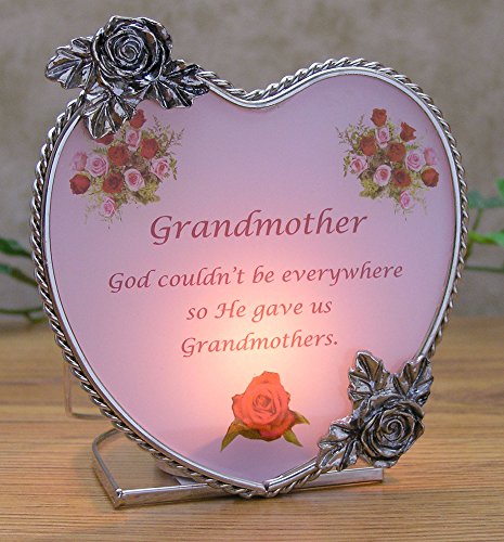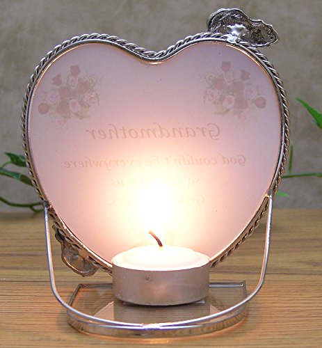 Grandma Candle Holder - Glass Heart Tea Light Candle Holder with a Loving Poem About Grandma