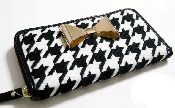 メタルリボンが可愛い♪千鳥格子のシックな長財布