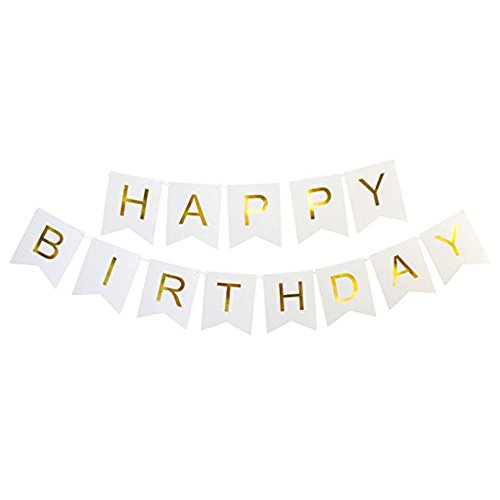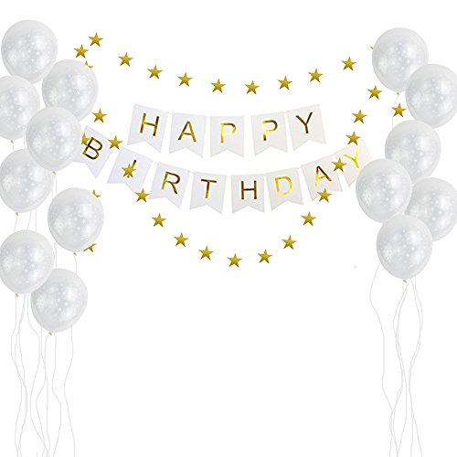 Birthday Party Decoration Kits - White Happy Birthday Bunting,Gold Star Garland and Star Latex Balloons- Birthday Party Decorations