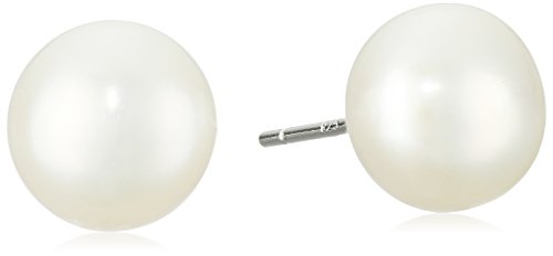 -. Title : Sterling Silver Freshwater Cultured Pearl Stud Earrings (9-9.5mm)