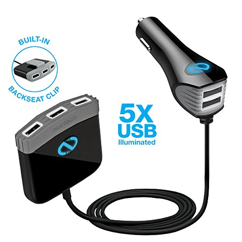 -. Title : Naztech Roadstar 5 USB 12A/60W Car Charger and Hub, Charge Up to 5 Devices Simultaneously from the Front & Back Seat, EACH port Delivers 2.4 Amps of Rapid Charging Power (2xUSB Plug + 3xUSB Hub)