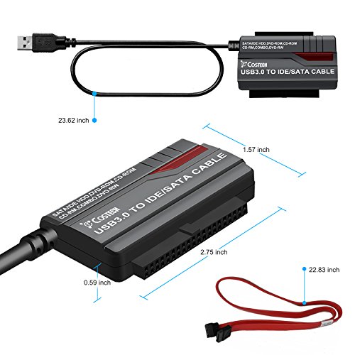 USB 3.0 to SATA IDE HDD, DVD-ROM, CD-ROM, CD-RM, COMBO, DVD-RW Adapter, Costech 2.5/3.5 HDD Hard Drive Converter With Power Supply Cable for Windows7/8/10, Linux, Mac OS