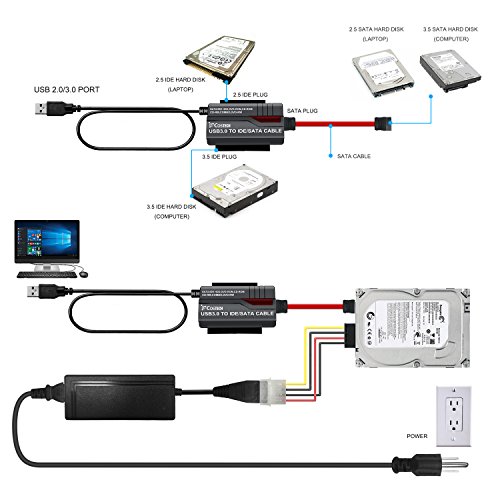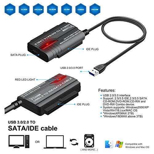 [USB 3.0 interface] - (Complies with USB 2.0/1.1 standards)USB 3.0 2.0 to SATA /IDE adapter cable connects standard 2.5"/3.5" IDE/ SATA hard drive to a computer through USB 3.0/2.0 With one touch backup.