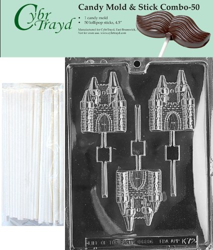 Cybrtrayd 45St50-K072 Castle Lolly Chocolate Candy Mold with 50 Cybrtrayd 4.5" Lollipop Sticks
