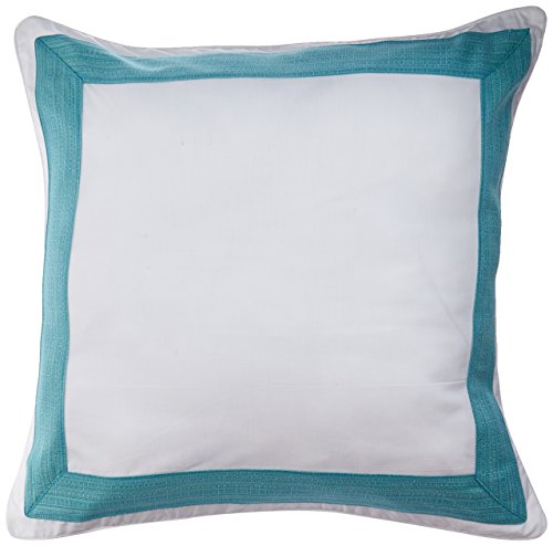 Product Description Euro sham (26" x 26") has an ivory face with a 3" wide mitered border in an aqua basket weave pattern. 100% cotton. Machine washable. 0