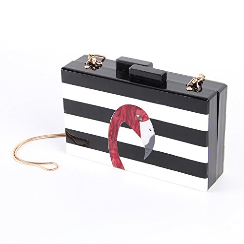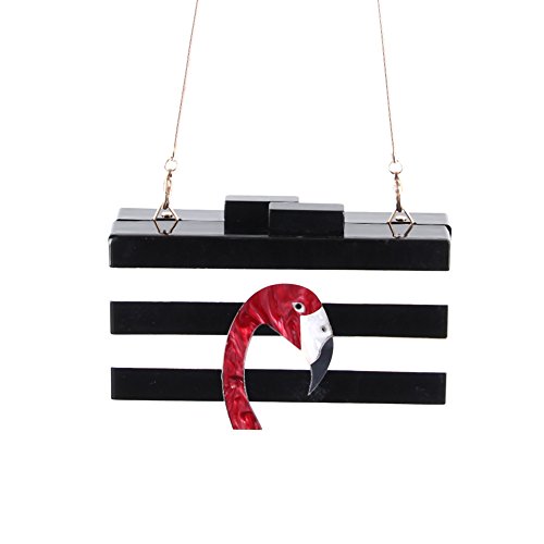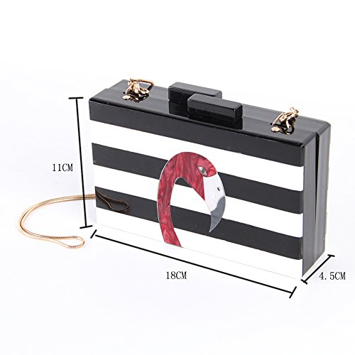 Product Description Size: 18 * 11 * 4.5CM; Material: High-quality acrylic; This bag pattern is made up of two flamingo and white composition of this pattern.The style is very elegant, very unique.This bag is suitable for your daily life, your party and various festivals.This is a great gift for your friends and beautiful girls. 0