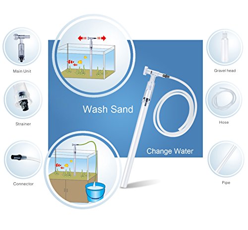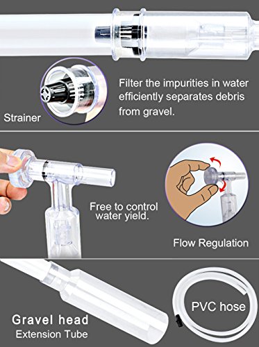 - FILTERING FUNCTION: Equipped with filter net, can quickly filter the impurities to purify the water while protect fish and sand being carried away, efficiently separates debris from gravel. Does not hurt any fish or decor when using.