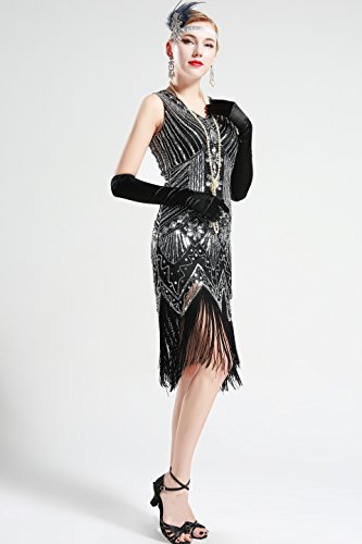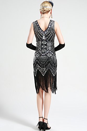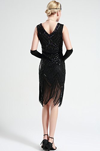 BABEYOND Women's Flapper Dresses 1920s V Neck Beaded Fringed Great Gatsby Dress (Small, Glam Black)