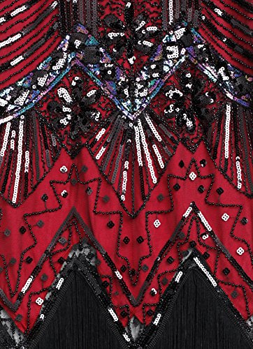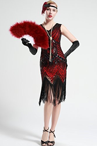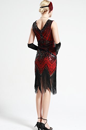 BABEYOND Women's Flapper Dresses 1920s V Neck Beaded Fringed Great Gatsby Dress (Large, Red)