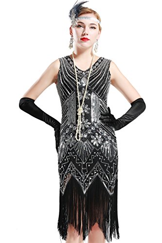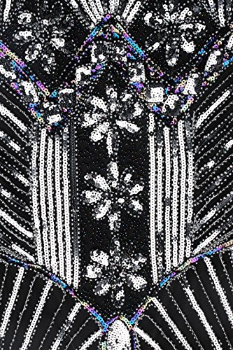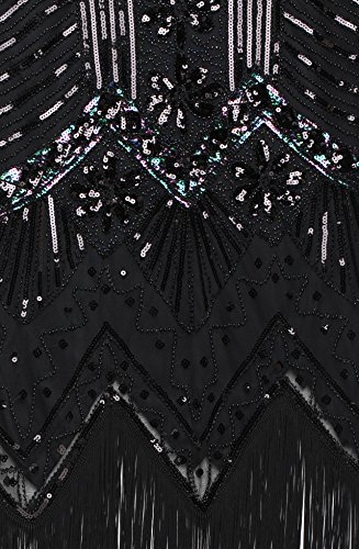 BABEYOND Women 1920s Gastby Sequin Art Embellished Beaded Fringed Flapper Dress Art Deco Dress (Large, Black)