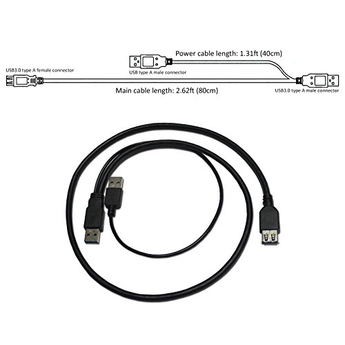 StyEAST SC321 USB Y cable 2.62ft USB3.0 A female to dual A male extension power enhancer splitter cable