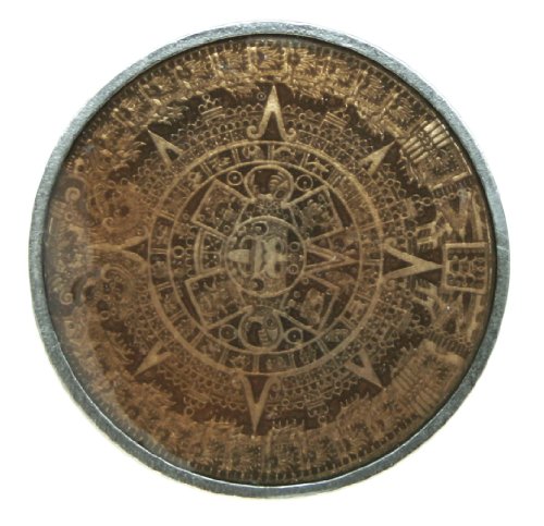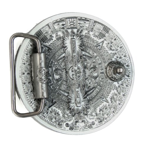 (Price Hidden)Aztec Calendar Buckle - Brown - Pewter Belt Buckle