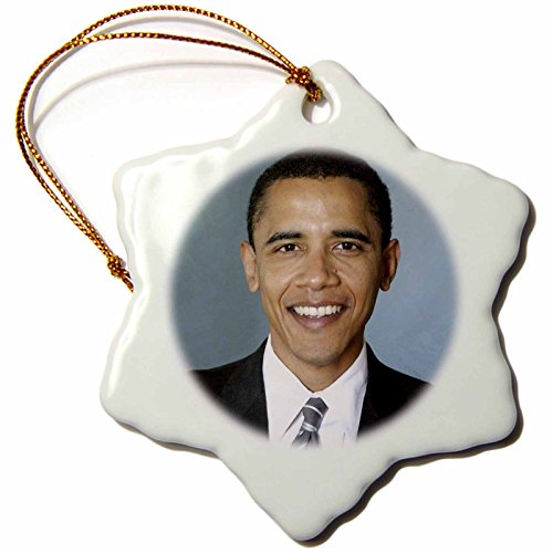 3drose Obama Barack Snowflake Porcelain Ornament, 3-Inch