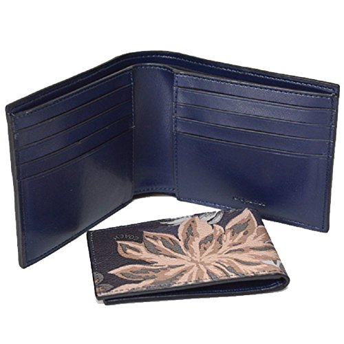 -. Feature : Done in finely textured, crossgrain leather with a stunning Tropical Floral pattern in shades of grey, brown, navy and black / Contains 2 billfold pockets, 8 credit card pockets and 2 additional slip compartments / Removable passcase has a clear ID window and 2 additional card pockets / Smooth, glove tanned leather interior is dark Navy Blue / Measures approximately: 4 1/4" (L) x 3 3/4" (H) x 1/2" (D)