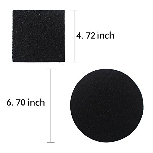 Specifications: Quantity: 16 pieces Material: activated-charcoal Round bin filter: 6.75 in/ 17 cm in Diameter, 5 mm in Thickness Square bin filter: 4.75 in/ 12 cm in Side Length,5 mm in Thickness