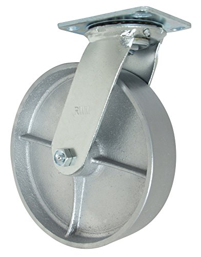 RWM Casters 45 Series Plate Caster, Swivel, Cast Iron Wheel, Roller Bearing, 800 lbs Capacity, 4" Wheel Dia, 2" Wheel Width, 5-5/8" Mount Height, 4-1/2" Plate Length, 4" Plate Width