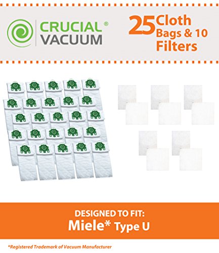 Filter/Bag kit for Miele Vacuums w/Green locking collar. Has 10 MicroFilters & 25 Style U Cloth Vacuum Bags; Compare to Miele Part No. 07282050; Designed & Engineered by Think Crucial