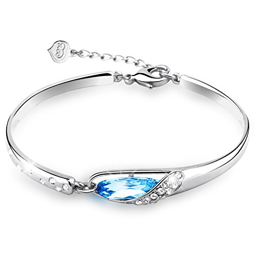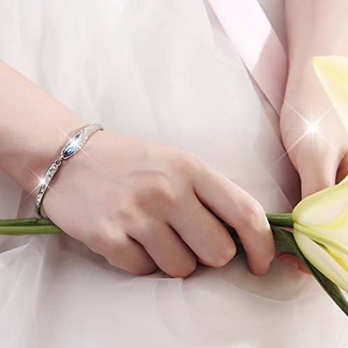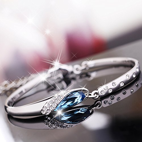 Bangles size :6.7 inches and 1.97 inches extension approx. | 1.Main Stone:made with Swarovski Elements crystal. | 2.Stone Color: Blue. Stone Shape: round,Pear Shape. | 4.Metal Type:Eco-friendly White Gold Plated Alloy.