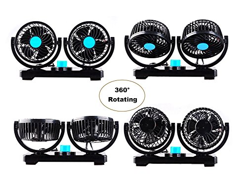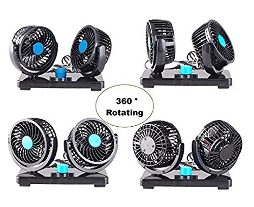 1-Auto Car Fan 360 Rotating Free adjustment Dual Head Car Auto Cooling Air Fan Vehicle Fan
