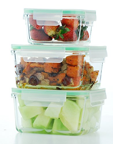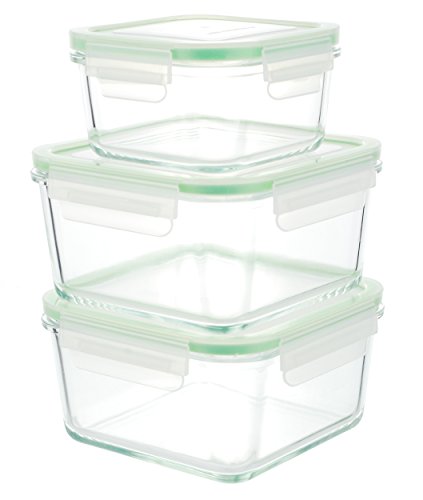 Kinetic GoGREEN Glassworks Series 6-Piece Square Oven Safe Glass Food Storage Container Set With Locking Lids (3 Containers and 3 Lids) 01318