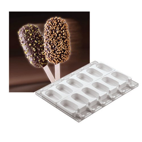 Silikomart Set of 2 Ice Cream Molds, Tray and 50 Sticks - Traditional Shape, L 15.5'' x W 11.75'' x H 1.25''