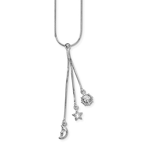 Sterling Silver Fancy Chain Sun/Moon/Star Necklace 18" - with Secure Lobster Lock Clasp (1mm)