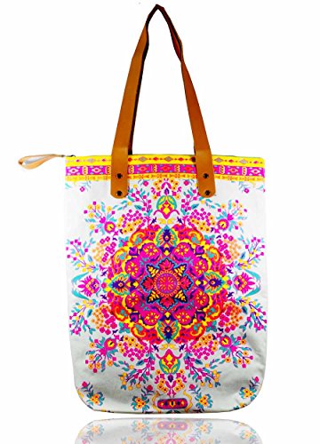 -. Title : Somer : Bohemian,Hippie Tote Bag Colorful P.R.Inted Pattern on Canvas Fabric