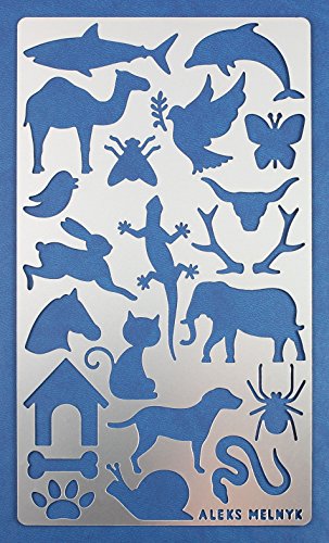 Metal, Stainless steel, 4 x 7 inch (10.1 x 17.7 сm), Thickness: 0.3mm. Children should use metal stencils with adults
