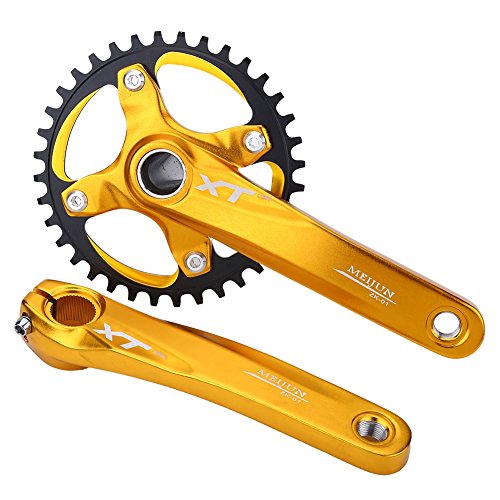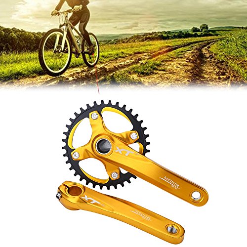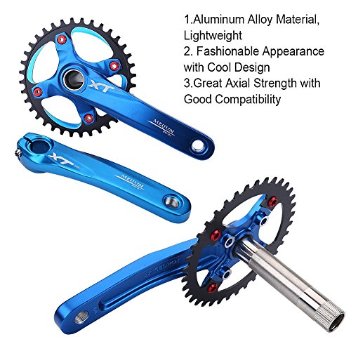 Features: 1. Premium Material: Made of aluminium alloy, this pair of crank arms are of high strength and deformation resistance. 2. Standard Precision: Ensure ultimate chain retention, Increase service life, and reduces friction and noise. 3.No Overlap: There is no overlap between crank arm and chain ring bolt and only fit for single speed bikes. 4. Come with Bottom Bracket Cover and 4 Bolts for free( Bottom Bracket Chain Ring Not Included). 5. An ideal replacement for bike repair, compatible with Shimano, Sram, Sunrun, etc.