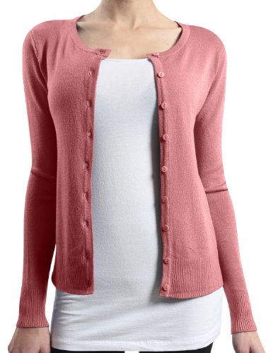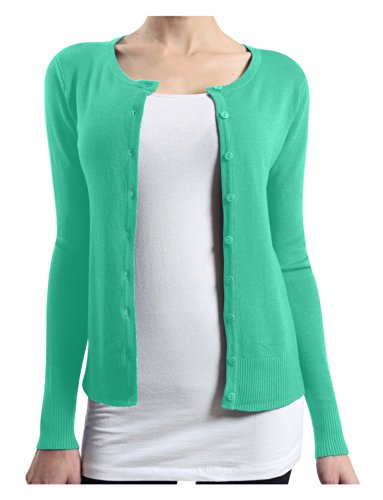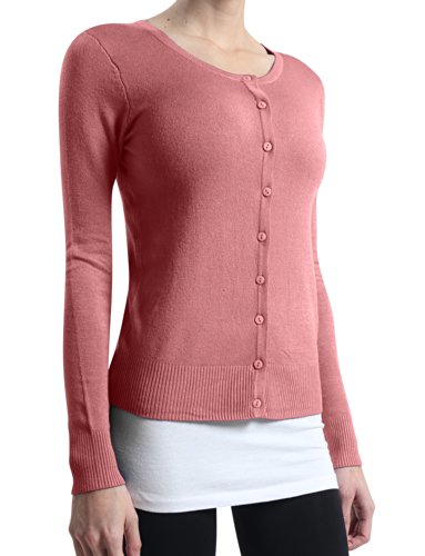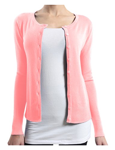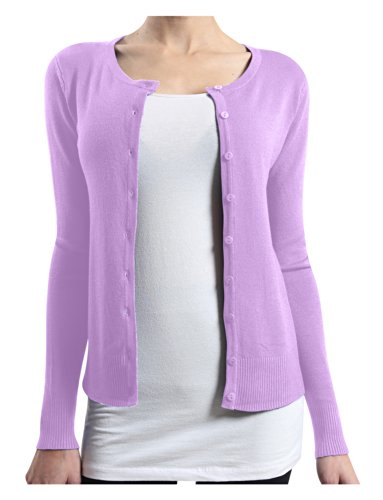 | (LE3NO)/Women/Sweaters/DIRECT FROM USA/LE3NO Womens Basic Round Neck Fine Knit Cardigan |