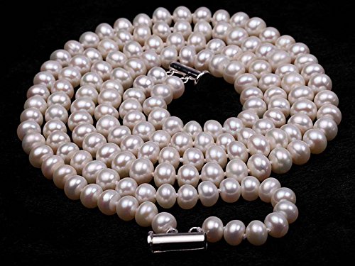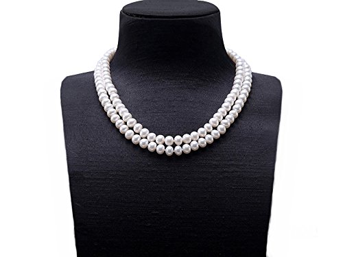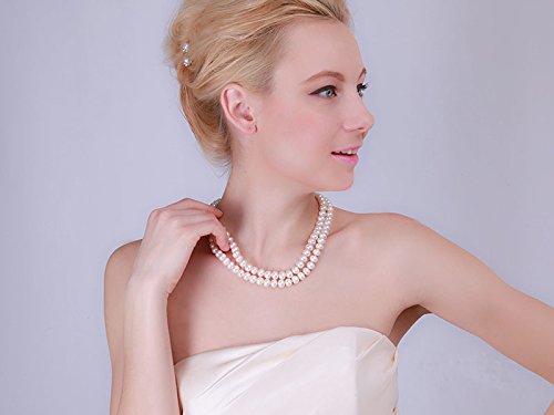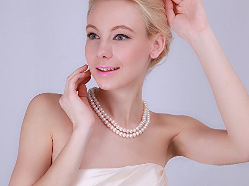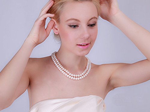 Description *Double strand freshwater cultured pearl necklace made with 8-9mm flatly-round white pearl necklace.