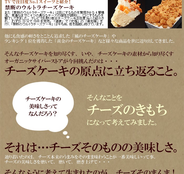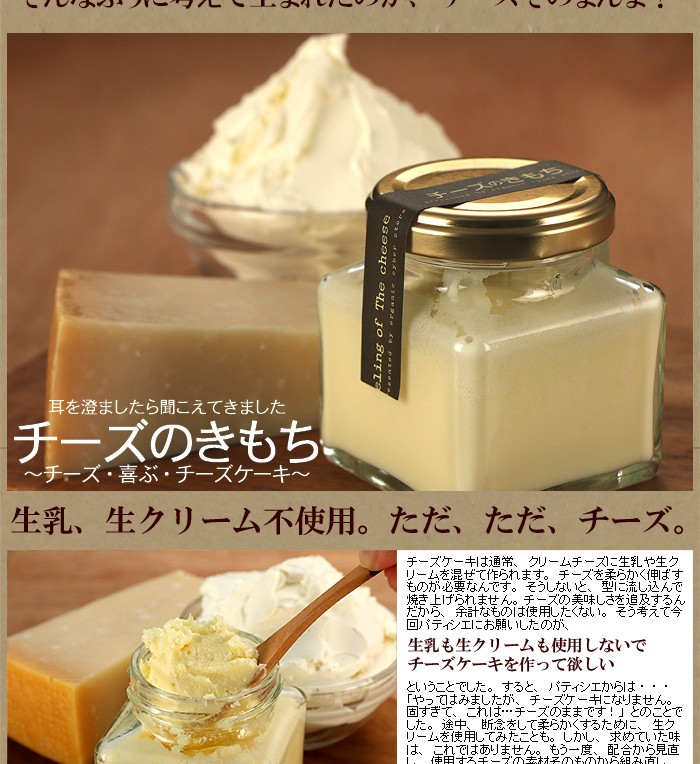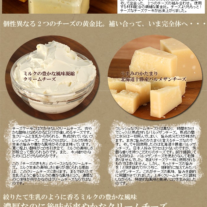 | 原材料 | ≫ | クリームチーズ、砂糖、パルメザン、全卵、卵黄、小麦粉、コーンスターチ、レモン汁、オレンジ果汁 |