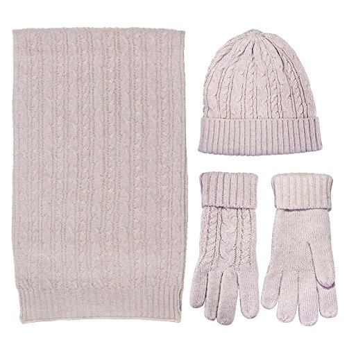 KEEP WARM-- Made of 30% wool and 70% acrylic.The fabrics are soft breathable and comfortable. Eco-friendly Natural MATERIAL. Soft, warm, cozy cable knit, Adorable fold-over beanie, long and warm scarf 3pcs Winter Knit Warm Soft Set include Beanie Hat Glove Scarf. Classic Warm Style fusion the advanced technology let you outstanding in the cold winter 0