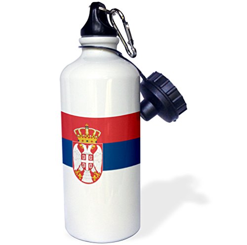 3dRose wb_158425_1 "Flag of Serbia Serbian red blue white Trobojka stripes coat of arms double-headed eagle crown sheild" Sports Water Bottle, 21 oz, White