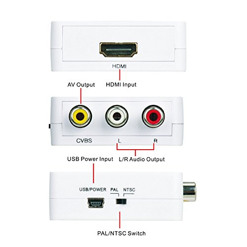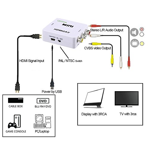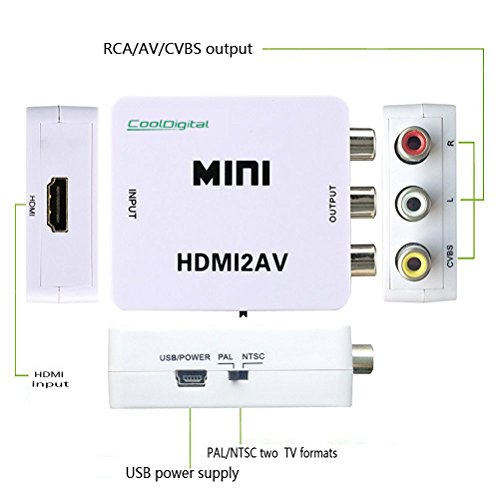 Cooldigital 1080P HDMI to AV 3RCA CVBS Composite Video Audio Converter Adapter Supporting PAL/NTSC with USB Charge Cable for PC Laptop Xbox PS4 PS3 TV STB VHS VCR Camera DVD white