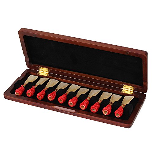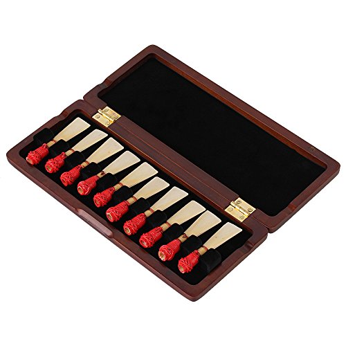 Studio : etfshop Publisher : etfshop Product Description Features: 1.Conveniently stores for reeds 2.Ergonomically designed to open and close easily 3.The case can hold 10 reeds,and can prevent reeds from moisture 4.The optimal protection against reed warping and tip damage Material:Wood Holder Type: Hold by separated velvet lattice Black Velvet Lining Size:18.3x6.4cm/7.2""x2.52""(LxW) Fit for Bassoon reed width:Approx.0.7cm/0.28"" The distance between reed and reed:Approx.1cm/0.39"" Color:Maroon Weight:140g Note: This item is for the reed case only, the Reeds are not included.The reed must be purchased separately Package contents: 1x Bassoon Reed Case 0