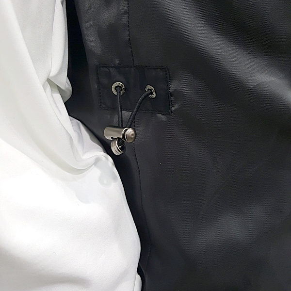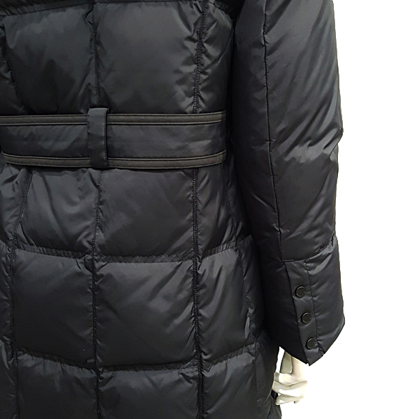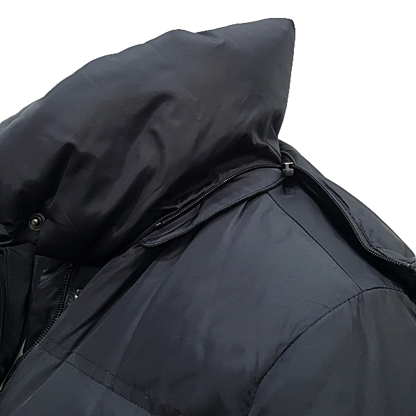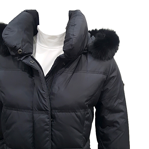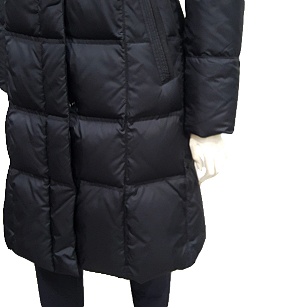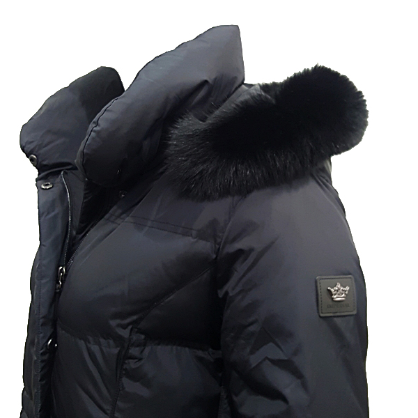 N100 수입 소재를 사용한 긴기장  다운 코트로 에리 및 퀼팅모양에 변화를 주었으며 스웨이드 배색으로 포인트를 줌