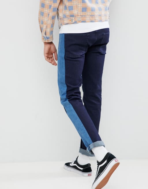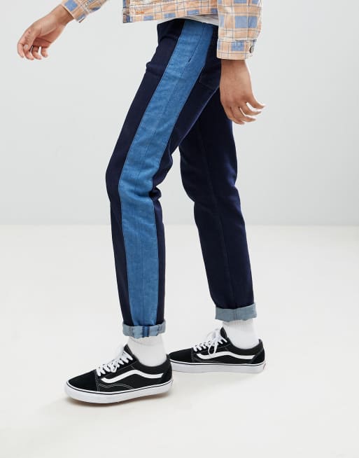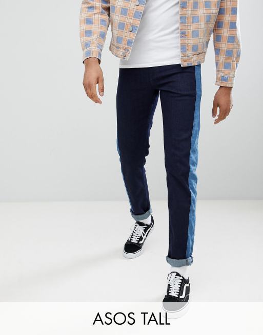 ASOS DESIGN Tall Slim Jeans In Indigo With Side Stripe Insert