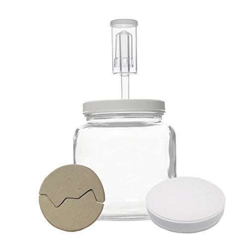 - Glass jar with airlock set up keeps veggies crisper and decreases mold potential.