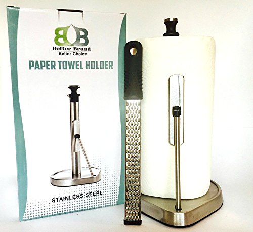 Paper Towel Holder - One Hand Tear - Stainless Steel - Countertop - Holders -Dispenser + Bonus