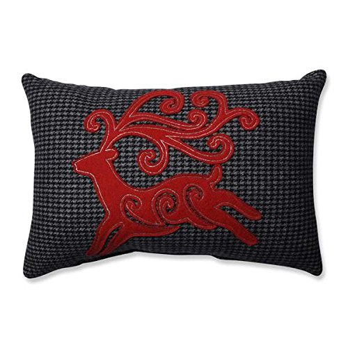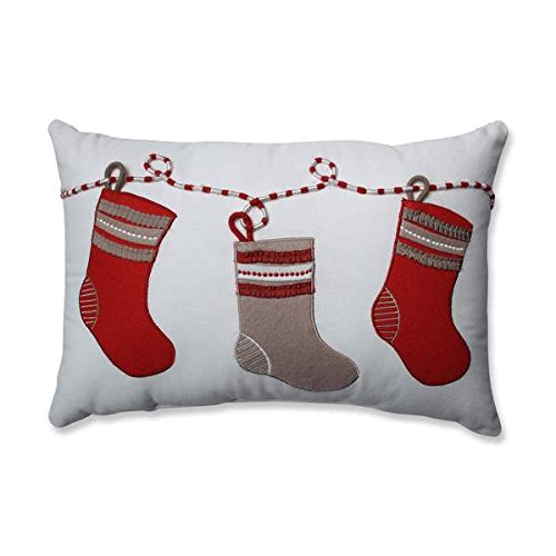 Classic Christmas red and pearlescent off-white embroidery bring the image of Santa and his sleigh to life on this charming throw pillow. Reindeer dart across the pillow dragging a sleigh full of toys and presents through a snowy night sky- just imagine the joy this rectangular throw pillow will bring to children and grandchildren when they see it out for the holidays.Feature