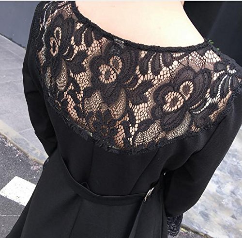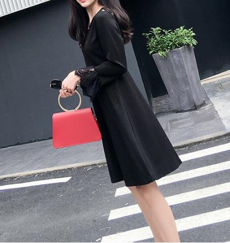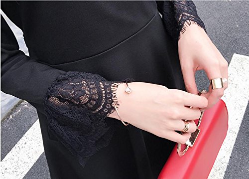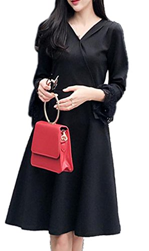 -. Title : (エンジェルムーン) AngelMoon ブラック フォーマル ワンピース カラードレス Vネック 長袖 レース 膝丈 レディース